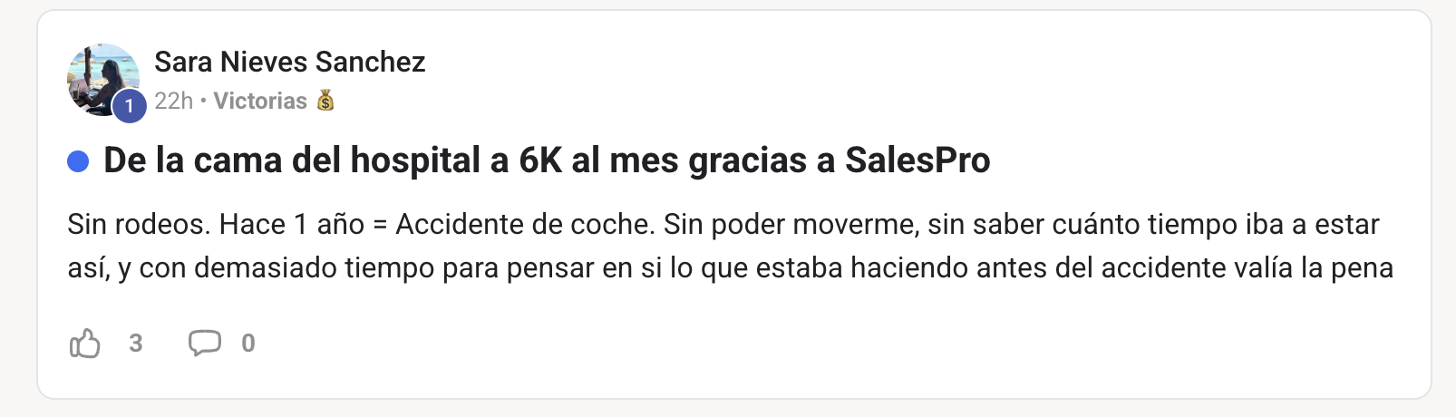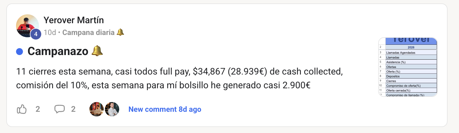 Auditorías personalizadas de llamadas reales, IA de análisis, grupo de alto rendimiento y acompañamiento para que pases de tu primer cliente a una carrera consolidada de 5.000 €+/mes.